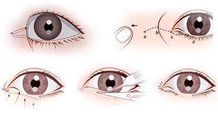 - Bước 4- tiểu phẫu: Trước khi tiến hành cắt khóe mắt, bác sỹ sẽ gây tê tại chỗ phần mí mắt giúp khách hàng không có cảm giác đau. Bác sỹ rạch đường nhỏ ở khóe mắt, cắt bỏ phần da thừa, mỡ thừa ở nếp rẻ quạt. Sử dụng chỉ thẩm mỹ định hình nếp rẻ quạt mới, chỉnh hình đôi mắt sang ngang hoặc xuống thấp để mở rộng góc mắt, điều chỉnh độ che phủ của rẻ quạt giúp đôi mắt cân đối, hài hòa.